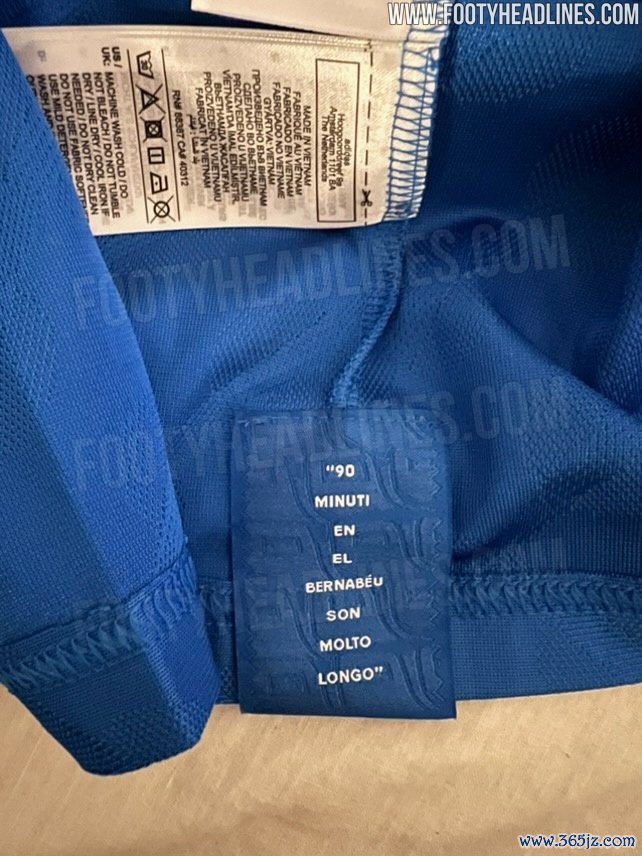 据悉,运动活动 服 设计灵感源自伯纳乌运动活动 场 的新座椅,并且内侧印有“90 Minuti en el Bernabéu son molto longo(伯纳乌的90分钟非常漫长)”, 中超这是圣地亚哥伯纳乌看台上的著名口号, 国际米兰体育赛事源自华尼托在1984/85赛季欧洲联盟杯准总决赛 期间所说的话。