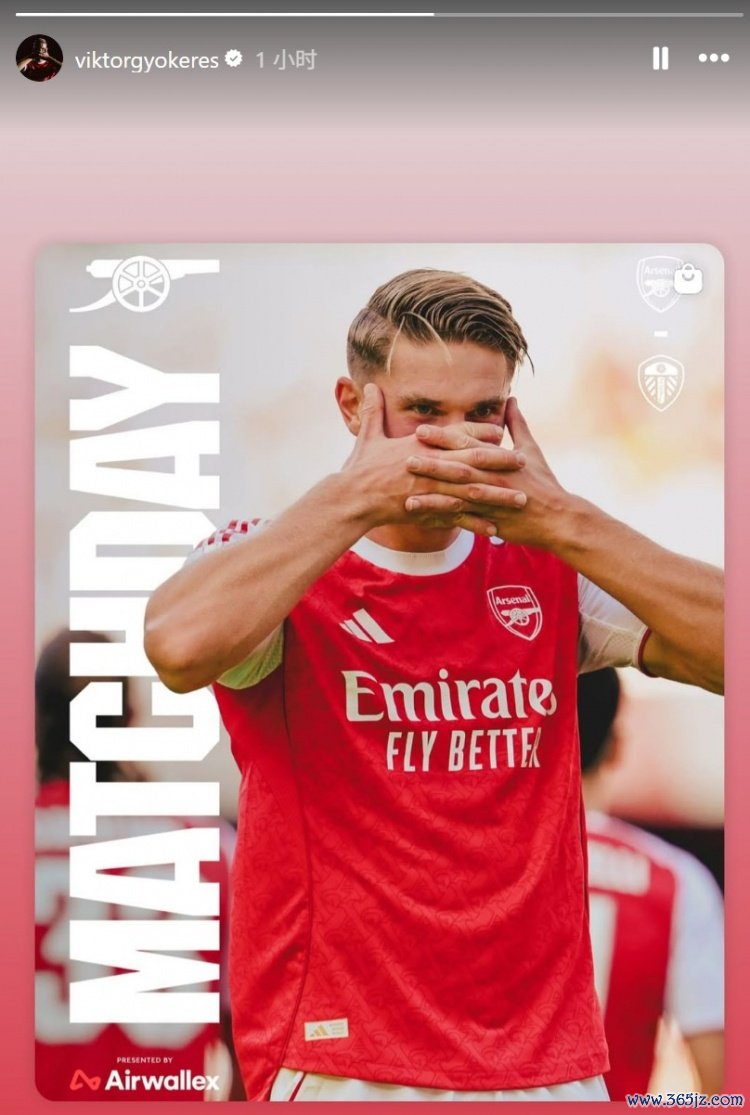 阿森纳新援约克雷斯也在个人社媒转发了个人海报为本场赛事 预热,海报中是其标志性庆祝动作。