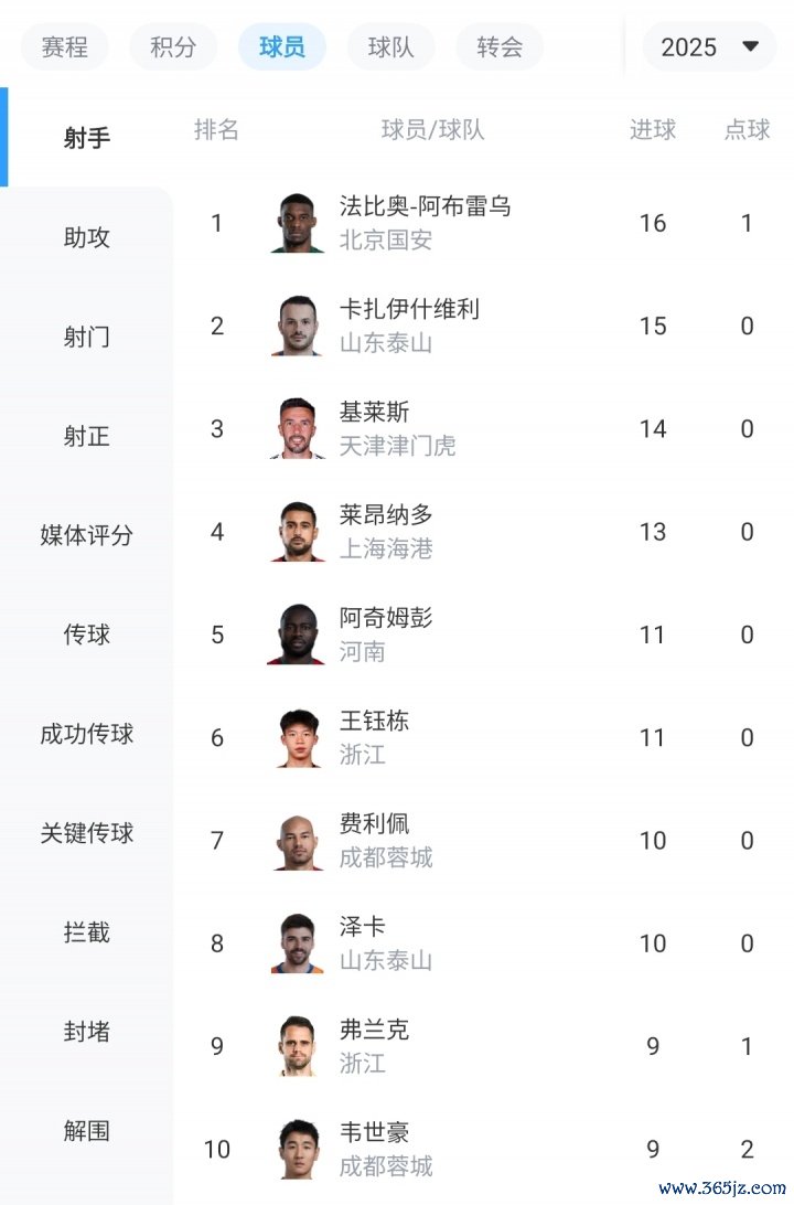 08月24日讯 中超第22轮仅剩国安vs三镇一场未赛,目前射手榜上,法比奥16球位列榜首欧冠简称, 中超高清直播卡扎伊什维利、基莱斯本轮均取得得分 , 国际米兰分列二三,乒乓球王钰栋和韦世豪成为唯二进入前十的国内球员。