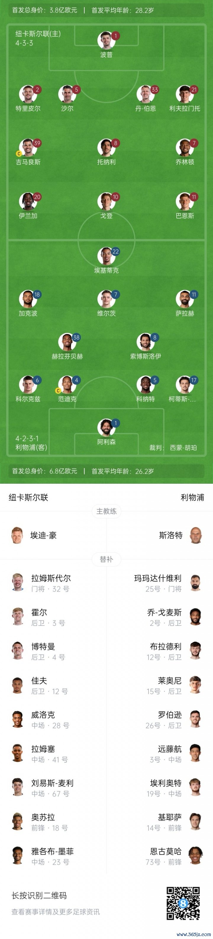 8月26日讯 英超第2轮,纽卡斯尔对阵利物浦, 中超赛前杆位公布。麦卡利斯特本场缺战, 国际米兰直播平台据悉他的妻子即将分娩。