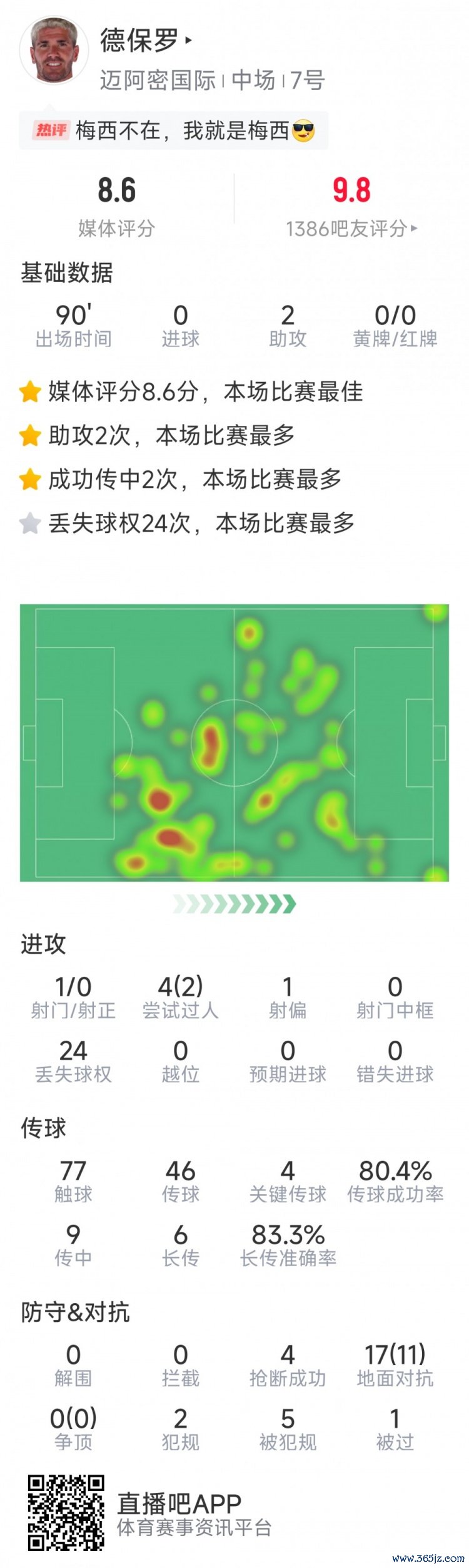 8月3日讯 在联盟杯小组赛,迈阿密国际2-2战平拿加沙,乒乓球并在罚球决胜 获胜, 中超在线直播德保罗助功 双响, 国际米兰以下为他在本场数据: