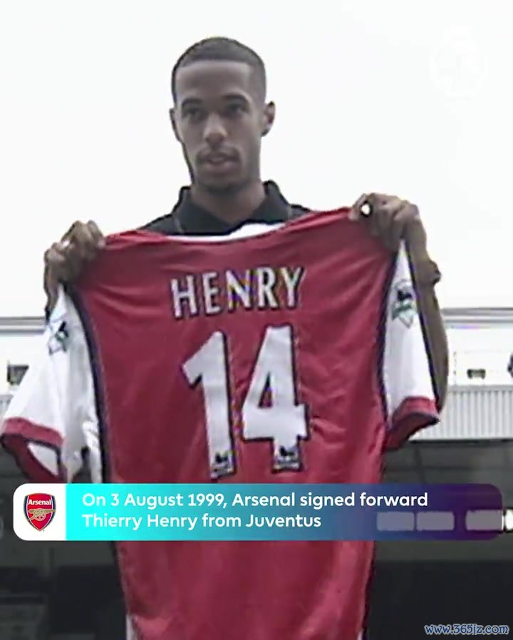 1999年8月3日,亨利以1610万欧转会费从尤文加盟阿森纳,英超官方社媒晒出亨利在阿森纳的视频集锦, 中超配文:“亨利加盟阿森纳, 国际米兰一笔永远改变英超的签约。”