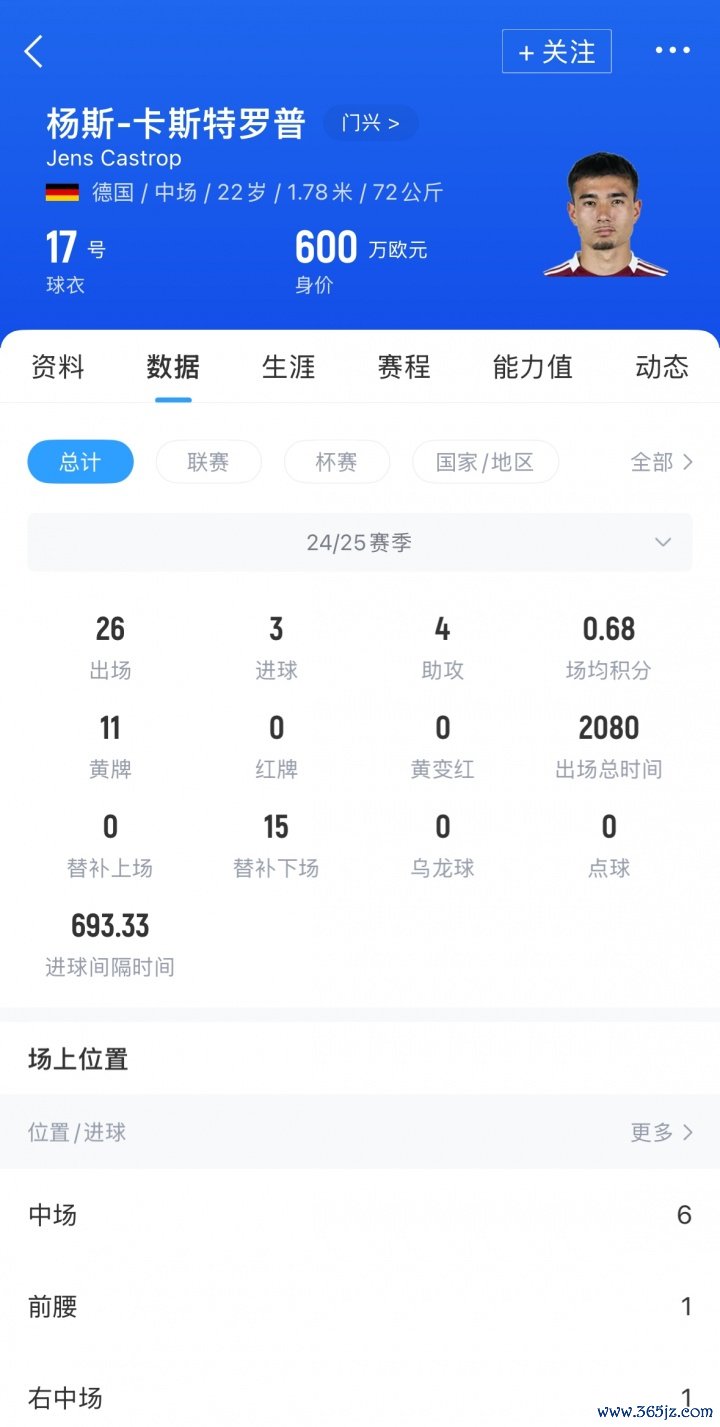 卡斯特罗普是韩国与德国混血,身高178,乒乓球司职中场球员。球员德回转 价600万欧, 中超在线直播今年夏窗以450万欧转会费从纽伦堡加盟门兴。