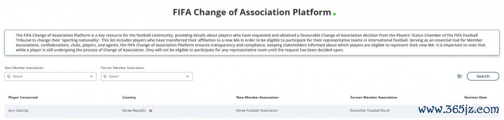 08月12日讯 国际足联协会变更平台官网显示,门兴22岁中场球员球员卡斯特罗普会籍由德国变更为韩国。