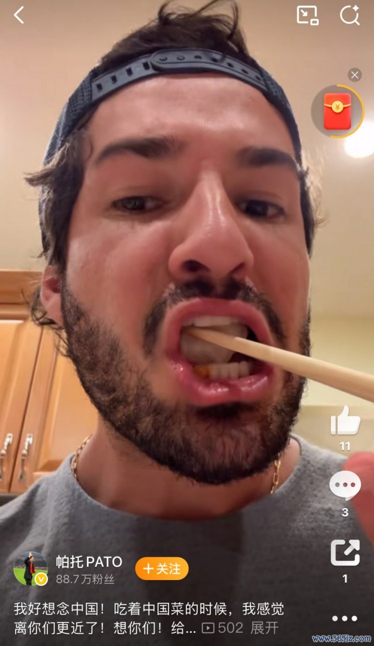 帕托为视频配文写道:“我好想念中国!吃着中国菜的时候, 国际米兰我感觉离你们更近了!想你们!给你们每个人一个深深的拥抱!”