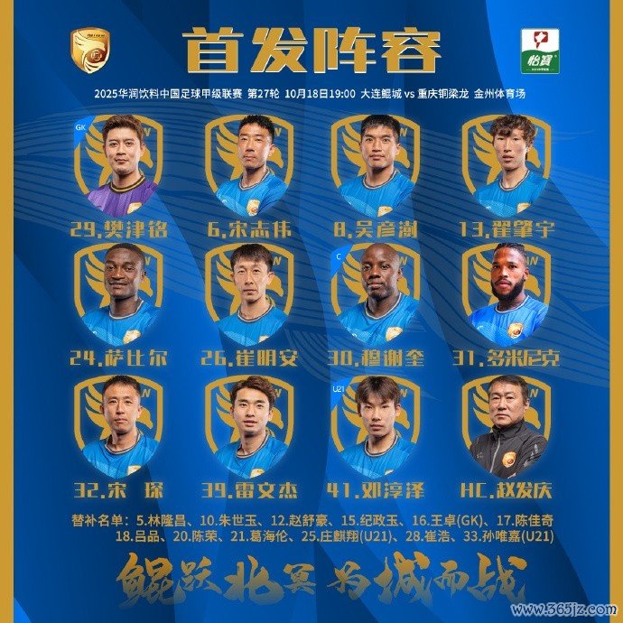 2025赛季中甲职业联赛 第27轮,大连鲲城VS重庆铜梁龙杆位出炉!