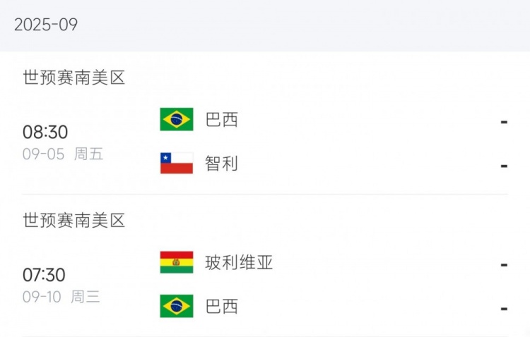 巴西国家队赛程