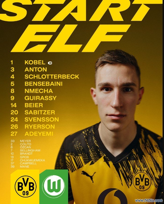多特VS狼堡杆位:施洛特贝克复出,吉拉西出战,小贝林厄姆后备