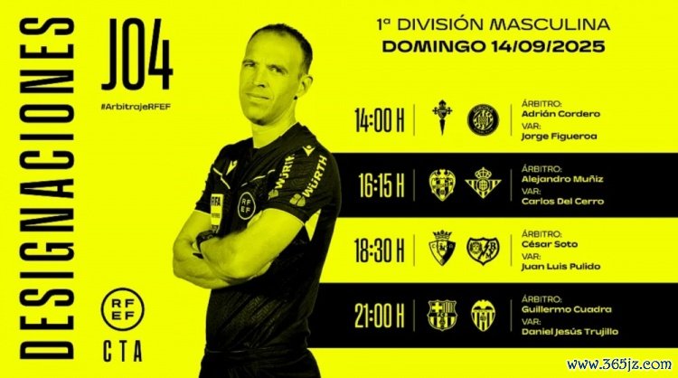 西甲周日比赛裁判任命:夸德拉执法巴萨vs瓦伦西亚