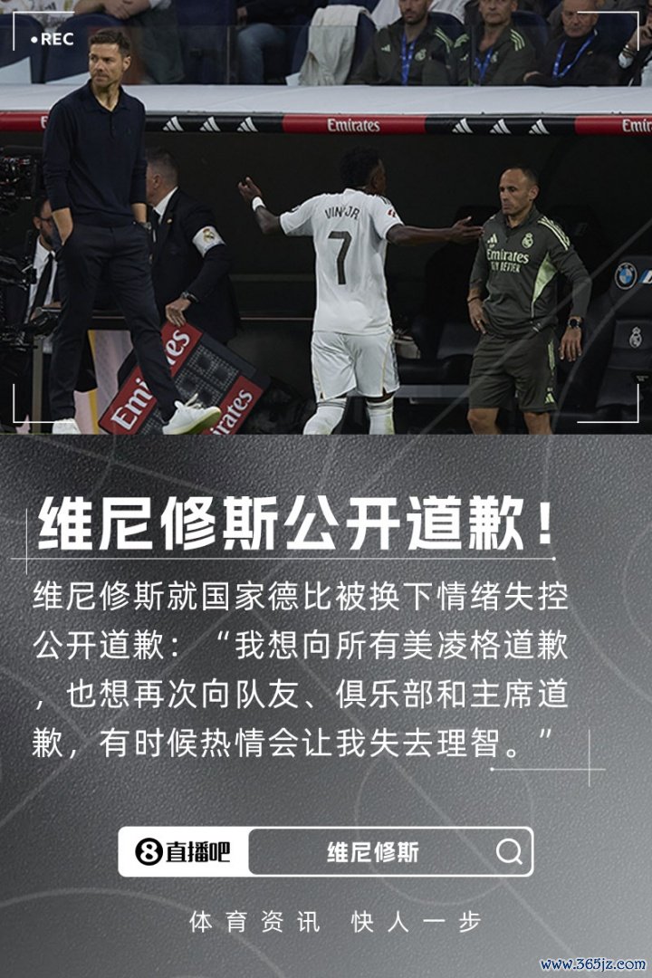 10月29日讯 维尼修斯在国家德比中,因不满被换下,直接走回更衣室。今日,维尼修斯社媒就不满被换下向皇马球迷、队友、俱乐部和主席致歉。
