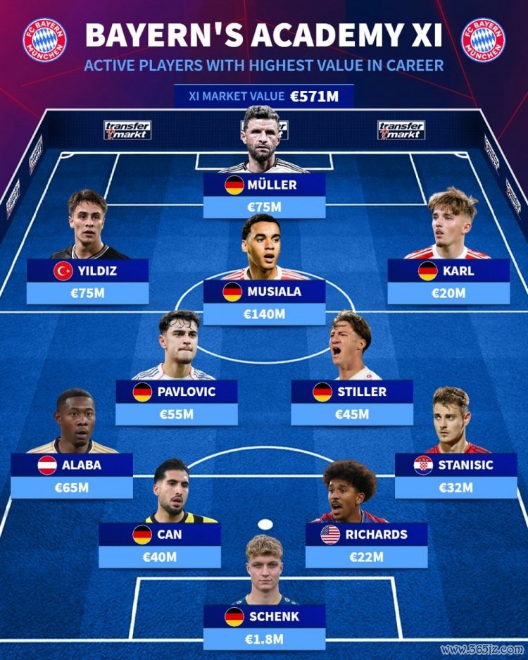 德转列拜仁青训现役球员阵容:穆勒、穆西亚拉、伊尔迪兹在列