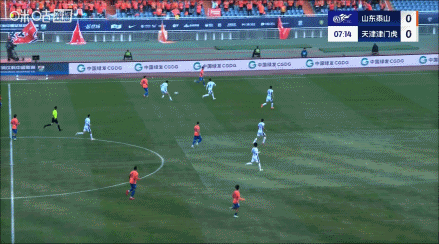 半场-山东泰山2-0天津津门虎 瓦科远射破门泽卡建功谢文能献助攻