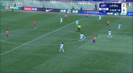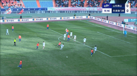 上半场补时4分钟,第48分钟,泽卡前场接长传球半单刀机会抽射被闫炳良扑出。↓