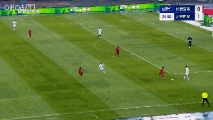11月01日讯 中超第29轮 长春亚泰vs北京国安。比赛第26分钟,亚泰外援卡米洛踹中江文豪腹部,