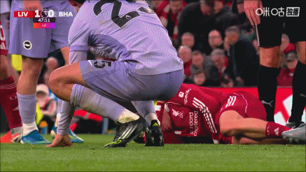 临近中场休息时,维尔茨在布莱顿禁区边缘参与进攻争夺,维尔茨先是完成抢断,维持了利物浦的攻势,但随后被戈麦斯抬起的脚踢中腹部,痛苦倒地。